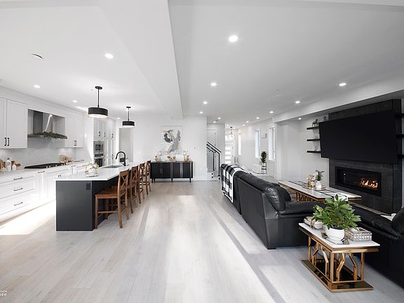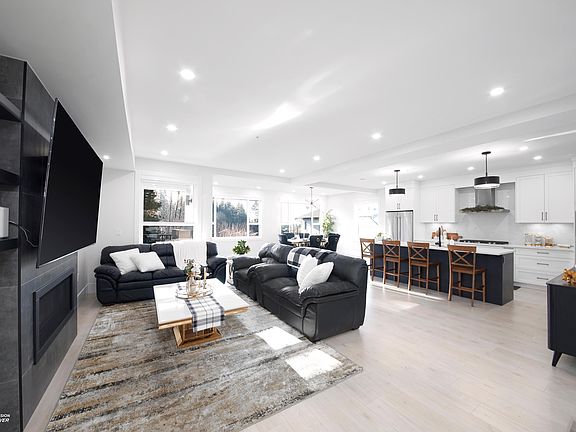 Bright open-concept main floorLarge windowsNatural lightPeaceful treed viewsModern kitchenStainless steel appliancesAmple storage