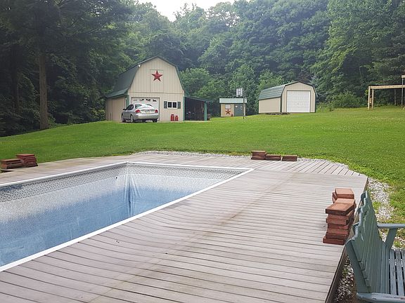 Do not miss this meticulously maintained 3 bed 2 bath home. This home features a custom-built hickory kitchen equipped with new SS appliances, apron sink, quartz counter-tops and a one of kind country style island. A large Florida room overlooks 3 acres of country bliss that includes a large beautifully landscaped yard, groves of trees, woods and a hidden field. Tastefully updated bathrooms and flooring, radiant heat and A/C unit. Large barn and small shed. All this just minutes from town!
