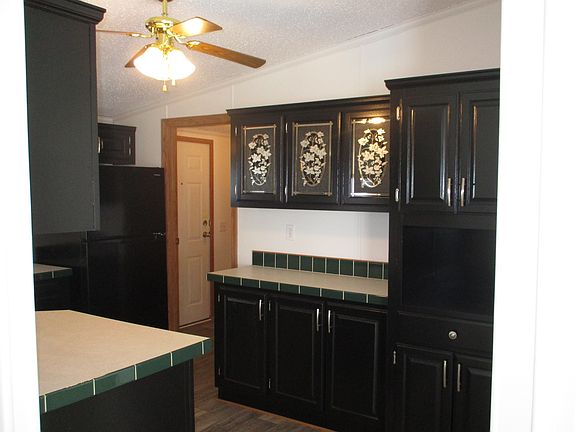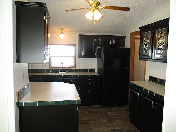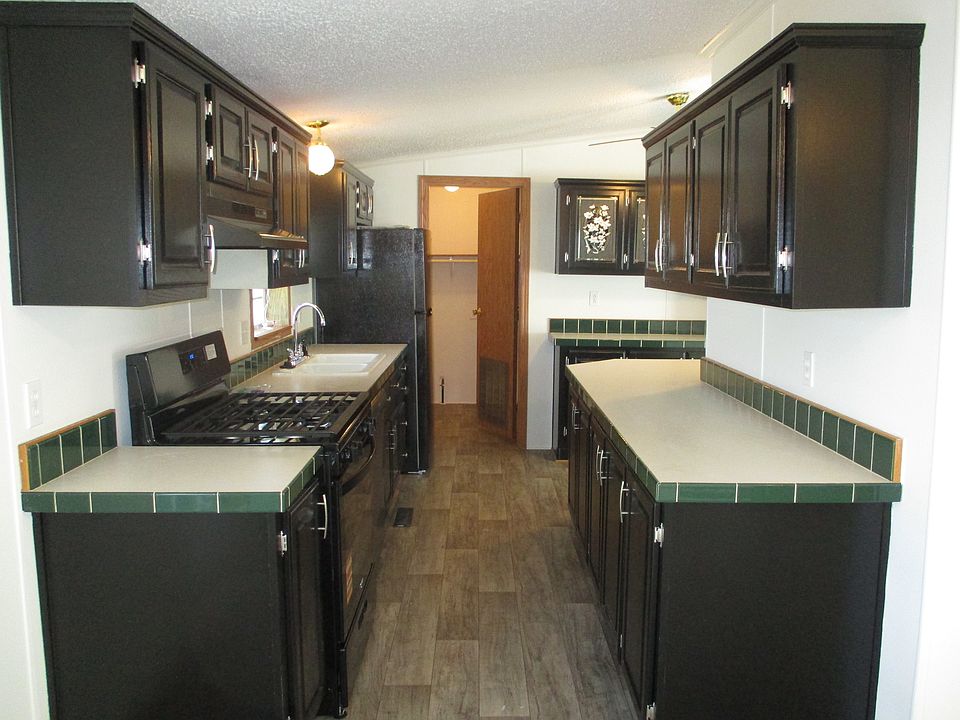 Walking up to this home you see how well maintained the outside of the home and the siding were. With brand new steps to the main entrance and the emergency exit, a vinyl sided shed, and a newer roof (about 6-7 years old with 30 year shingles), this home is quite inviting. As you enter the home you notice just how open and spacious the living room is. The kitchen has so many cabinets, which have been painted a rich black color, and counter space, every cooks dream. The primary bedroom is off the front of the home and has a walk-in closet and rather large en-suite bathroom that includes a garden tub, step-in shower, and vanity with one sink and tons of counter space (enough room to add another sink if you wish!). The guest bedrooms and guest bath sit toward the back of the home. This home has a new front door combo, new paint, carpeting, linoleum, cordless blinds, and heat registers throughout. The kitchen has a new faucet and all brand new black appliances (gas stove, hood vent, dishwasher, and fridge). All this for under $60,000! Inquire today!