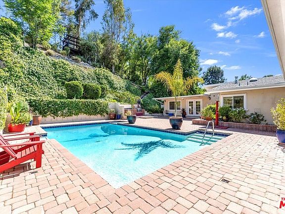 A beautifully updated single-level 4-bedroom plus and office with all new wood floors, 3-bath pool home in Walnut Acres with a perfect blend of elegance and comfort. Step inside to discover a grand living room that seamlessly flows into the dinning room, creating an inviting open concept space. The gourmet kitchen boasts stunning granite countertops and a spacious center island, ideal for entertaining. Enjoy casual meals in the cozy breakfast area or host formal dinners in the elegant dining room.The home features a stylish dual exposure fireplace, enhancing the ambiance of the entire living space. With hardwood floors throughout, this light and bright residence is designed for modern living. French doors from the main areas lead you to an expansive backyard that is a true paradise. Dive into the oversized sparkling pool, perfect for summer gatherings and relaxation. Additional highlights include a 2-car garage and ample carport parking, ensuring convenience for you and your guests. Nestled above the street, this home offers both privacy and security, making it an exceptional retreat.