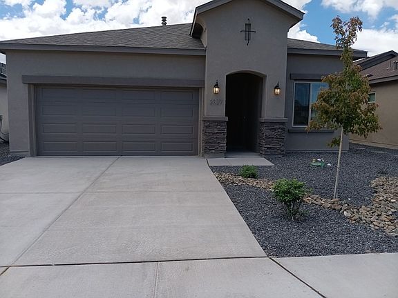 Welcome to this brand new, beautifully designed 3-bedroom, 2-bathroom rental home in Rio Rancho, NM. This never-lived-in property features a modern kitchen equipped with brand new stainless steel appliances, granite countertops, a separate oven, dishwasher, and a spacious kitchen island perfect for meal prep and casual dining. The airy living area offers a comfortable space for entertaining or relaxing. Additional features include a fenced backyard, low-maintenance xeriscaping, a sprinkler system, and refrigerated air for year-round comfort. Enjoy the convenience of a 2-car garage and a kitchen pantry for extra storage. This pet-friendly rental is ideally located near top-rated schools including Vista Grande Elementary, Mountain View Middle School, and V. Sue Cleveland High School making it a great choice for families. It's also close to upcoming new developments, adding even more convenience and value to the area. Our Preferred Resident program includes the following: - Quality Air filters delivered to your front door monthly. -Access to Utility Concierge service for easy and streamlined utility transfer or utility set-up. -Stay up to date 24/7 with any repair request you submit using our Online Maintenance portal. -One Waived Late Fee per year. -Improve your credit score. -Need another set of keys for your rental home? We'll have them made up for you! -Onsight Safety Inspections Price/Monthly Rent: $2,300 Security Deposit: $2,300 Ask about our NO SECURITY DEPOSIT option! Processing fee: $225 Monthly Preferred Resident Program: $40.95 Pet Deposit: $300 Per Pet Monthly Pet Fee: $25 Per Pet *Pets subject to approval.