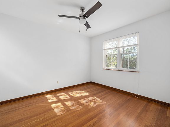 The large owner bedroom with ceiling fans and a roomy closet, the secondary bedroom that is comfortable in size, the original bathroom with tub,new toilet, and vanity. Full basement for storage and a detached one-car garage.