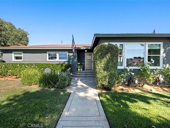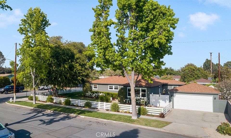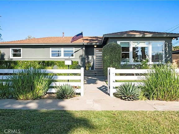 Welcome to this beautifully updated mid-century gem, built in 1952 and full of character! Nestled on a peaceful corner in the charming Park Santiago neighborhood—known for its tree-lined streets and vintage homes. This move-in ready residence blends classic design with modern updates in all the right ways. From the moment you arrive, the architectural details catch your eye: a sleek horizontal fence, a stylish wood-and-glass front door, fresh dark gray/green paint with crisp white trim, and newly added front steps and porch—all setting the tone for the contemporary touches inside. Step through the door and into an airy, open-concept layout designed for comfortable living and effortless entertaining. Warm original wood flooring flows throughout, complemented by all-white walls, recessed lighting, and French doors that open to a private backyard oasis. The spacious living room features custom built-in entertainment cabinetry and a view of the landscaped, fully fenced front yard. With windows on three sides, the dining area is bright and inviting—blurring the line between indoor and outdoor living. At the heart of the home is a beautifully appointed kitchen with a large island that seats four, perfect for gatherings and everyday life. Enjoy stainless steel appliances, a mix of butcher block and quartz countertops, glass-front cabinetry, and abundant natural light—making this space both functional and stylish. Outside, you’ll find two cozy patio areas, including one with a fire pit—ideal for relaxing under string lights on a warm evening. The detached 2-car garage includes new 6A electrical for car charging and a wide driveway for added convenience. This home offers three comfortable bedrooms and two tastefully updated bathrooms, including a private primary suite. The laundry room was remodeled with tile floors and a folding table with open shelves. The spacious, fully fenced front yard provides a secure play area or the perfect spot to unwind. With fresh interior and exterior paint, new insulation, an upgraded electrical panel, and newer HVAC, tankless water heater, plumbing, and roof systems, this home is not only beautiful but also thoughtfully maintained. All in all, this is a wonderful opportunity to own a stylish mid-century home in one of the area's most desirable, centrally located neighborhoods. Come see for yourself—you’ll feel right at home!