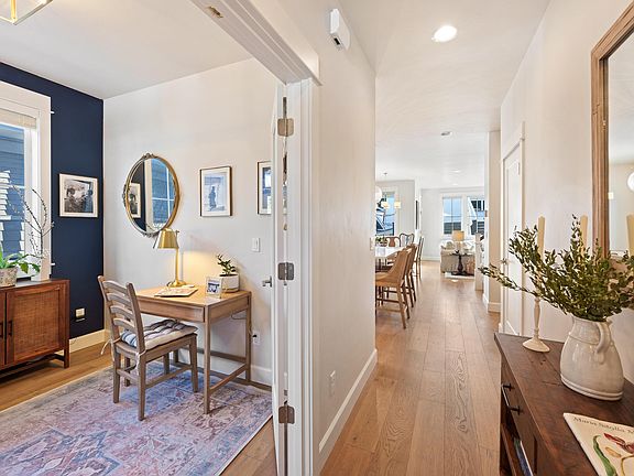 private home office with its own entrance provides a quiet workspace. The main-level primary suite