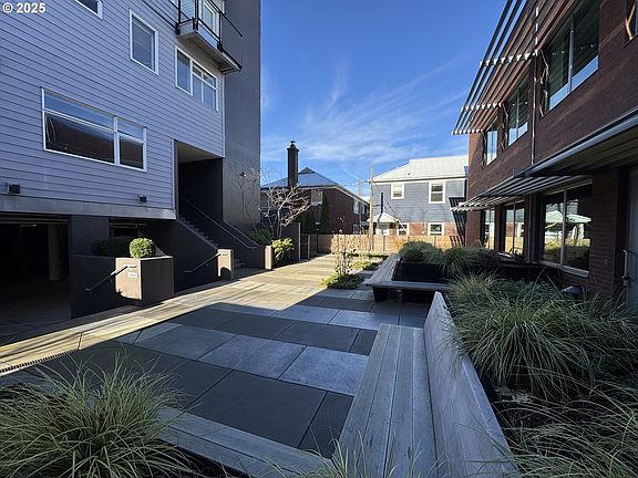 Welcome to this penthouse-level condo in Northrup Commons. Definitely not a "cookie cutter" floor plan, this unique unit offers both south and north exposures, 3 private balconies, its own dedicated common-area alcove and has extensive custom updates.Designed by award-winning Sienna Architects, led by Gary Reddick, known locally & internationally for a diverse portfolio. Sunlight pours in the 19 ft of front windows illuminating the 2 floors of living areas.Interior Designer Karen Karns orchestrated updates to the kitchens and baths with an eye to efficiency, style and pleasing coastal colors in the hand selected glass, tile and pentalquartz. Stainless steel Jenn-air appliances, rare African Anige custom cabinets, & specialty lighting are a refreshing departure from the ordinary. Contractor William Ballard oversaw the permitted to-the-studs kitchen and primary bath remodels in 2016. They also teamed up on the luxurious primary bath with gorgeous tilework, a spacious walk-in shower and heated tile floor. Recent updates include refinished #1 grade cherry floors, interior paint, high quality carpet, Trane furnace, heat pump for cooling and new light fixtures. The main floor bedroom includes a half bath and is open to the hall, ideal as a guest bedroom, media room or library. This condo enjoys a connection to the outdoors from it's 3 decks- each with differing views that provide 3 different microclimates for plants & varying temperatures throughout the day- North to Mt St Helens and the Fremont Bridge and South to cityscape, historic neighborhood homes & the West Hills. In the heart of Portland's NW District with a walk score of 98, you can leave the car in the garage and explore NW 23rd, shopping at New Seasons and Trader Joe's, coffee shops, cafes & local parks. Take the streetcar or MAX. Northrup Commons stands as a model of integration & stainability creating much-needed housing through mindful planning.This is the carefree urban lifestyle you've been dreaming about.