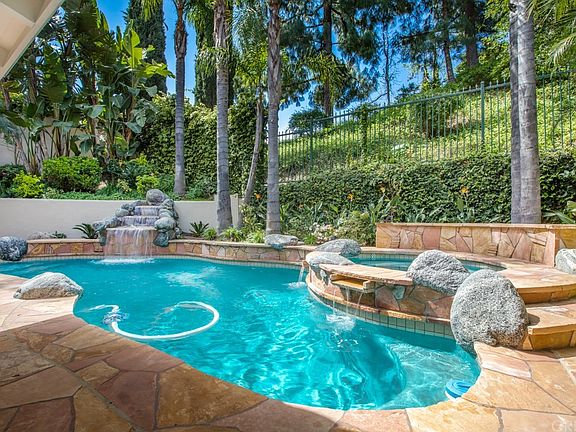 Certified "HOUSE BEAUTIFUL", every square inch of this gorgeous home has been "DONE!" Your DREAM HOME awaits! Remodeled, Refurbished and Restored to perfection, an oasis of tranquility and beauty! Guard Gated Bellagio Estates of Calabasas. Prime corner lot on a cul de sac, fabulous resort-like backyard with custom pool, spa, barbecue island with cook top and refrigerator, waterfall, stone decking, large side yard with another stone waterfall and stone decking, high end, expensive lush, tropical landscaping throughout, covered patio. Gourmet center island open concept kitchen with granite counters and new Wolf Range, built-in refrigerator, double oven, opens to family room with stacked stone fireplace and open wet bar, large separate laundry room, wrought iron staircase, large master suite with sitting room and fireplace, cathedral ceilings, remodeled baths, large bedrooms, fourth bedroom is downstairs and has been turned into an office with beautiful built-ins, hardwood floors, plantation shutters, decorator white shades, two story entrance, closets have been expertly upgraded throughout, even the three car garage has been redone to perfection with new flooring and finished drywall, two zone central heating and cooling. Las Virgenes schools.