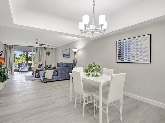Completely remodeled 2bed/2bath unit. The kitchen opens up to the living room has solid wood cabinets(soft closed system) New appliances, quartz counters, under cabinet lighting. New A/C. Impact front windows. Wood looking Luxury vinyl planks floor throughout the unit. Bathrooms with custom cabinetry, counters and custom lightning. Frameless glass enclosed shower in Master suite, large walk-in closet and additional 3 closets. Full size New washer and dryer in the unit. Enjoy watching the golfers from the big patio with impact sliding doors. Assigned covered carport and plenty of guest parking. Extra secured storage area. Low maintenance includes: Hot and Cold water, cable, tennis, pickleball, heated pool, BBQ sauna. Short drive to all beautiful beaches .Easy access to the major Highways.