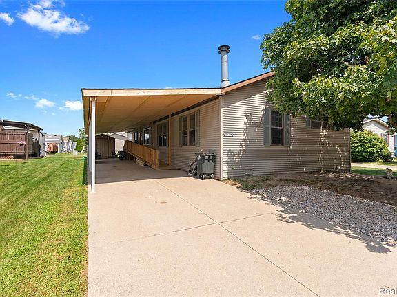 * Buyers financing fell through at no fault of the seller* This beautifully updated home offers comfort, convenience, and accessibility with a host of recent upgrades. In 2024, a brand-new carport and handicap-accessible ramp were installed, along with a full suite of new appliances including a dishwasher, stove, washer, dryer, refrigerator, and stand-up freezer. An 8x10 shed provides additional storage, while new carpet and flooring create a fresh, modern feel throughout. The inviting living room features a cozy wood-burning fireplace, and the spacious primary suite includes a walk-in closet, ensuite with a garden tub, and a separate walk-in shower. Enjoy year-round comfort with a new A/C unit and a furnace sized to meet the home’s square footage, both installed in 2024. A sliding doorwall offers the potential for a future build-out, enhancing the home’s natural light and indoor-outdoor flow. Set in a private, secure location, this home is thoughtfully designed for both functionality and relaxation.