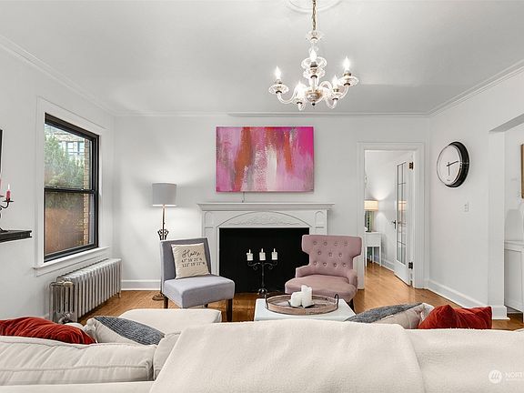 Charming History! This 2-bedroom corner unit in North Capitol Hill's Chancery exudes historic allure with its original 1928 crown molding and period details. The spacious open concept showcases hardwood floors and an updated kitchen featuring stainless steel appliances and granite countertops. Enjoy a roomy updated bathroom, oversized bedrooms, high ceilings, and ample closet space. The convenience of in-unit washer/dryer adds to the modern appeal. Benefit from a deeded parking spot in a secure garage, along with a storage unit. Enjoy working on projects in the wood working room. Proximity to I5, 520, Montlake, bus routes, UW, SLU, downtown, restaurants, and nightlife makes this an ideal location!