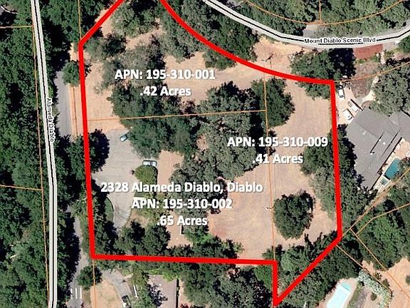 Incredible opportunity to build your Dream Home in sought-after Diablo! Three parcels can be sold as one for a total of approximately 1.48 flat acres for $4,500,000, or, you can purchase this parcel on it's own with approximately .65 acres and additional .41 acres for $2,500,000, all surrounded by mature trees and multi-million dollar estates. Alameda Diablo is one of the most coveted streets in this prestigious neighborhood and rarely do you see such an ideal setting become available.