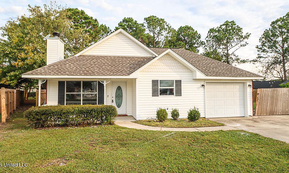 Adorable cottage style home minutes from the beach, Keesler AFB, casinos, shopping and I-10. Upgrades include: fresh paint throughout, new luxury vinyl plank flooring in hallway and bedrooms, new HVAC, and 1 year old roof! With a beautiful park-like setting in the back yard and a large deck on the side, this charmer sits at the base of a cul-de-sac on a quiet street. It has a single car garage and nice fireplace in the living room. Call today to make an appointment to see this one before it gets away!
