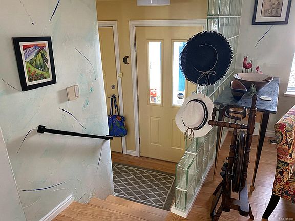 This Zebra-designed 3 bed, 3 bath home blends unique architectural features with modern comforts. Inside, hardwood floors flow through the main level, where a gourmet kitchen shines with professional-grade stainless steel appliances, under-cabinet lighting, and elegant accent lighting in the dining room. The living space opens to a fully fenced, gardener’s dream yard with mature landscaping, new fencing, and a 5-person hot tub off the deck. Upstairs, the primary suite boasts a Jacuzzi-style tub and skylight, while the second bath features heated tile floors and another skylight. Enjoy a built-in sound system with wired speakers on the main floor and in the primary suite. Complete with a single-car garage and located a short walk to Royal Jubilee Hospital, this home offers exceptional design, privacy, and convenience.