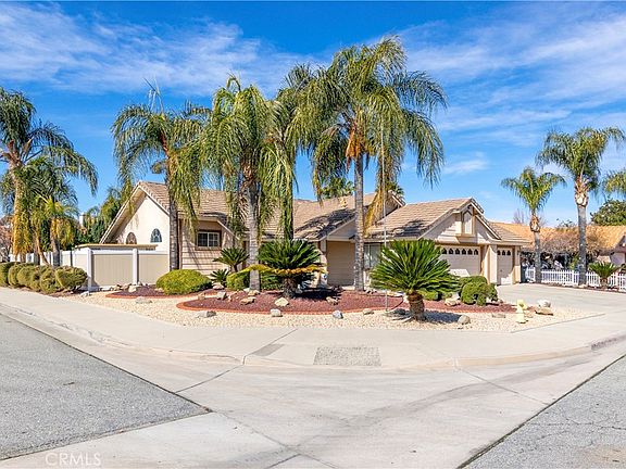 Welcome to this beautiful single-story home, ideally situated on a corner lot in a peaceful San Jacinto neighborhood with No HOA & No Mello Roos! This thoughtfully upgraded 3-bedroom, 2-bathroom home also features an additional 4th bedroom/office in the garage ideal for guests, a comfortable home office, or extra living space. The open and airy floor plan, where natural light pours in through energy-efficient dual-pane windows and skylights, creates a bright and welcoming atmosphere. The living room is highlighted by a classic brick fireplace with a custom mantle. The wood laminate and tile flooring run throughout the home, combining style with easy maintenance. The heart of this home is the beautifully updated kitchen, designed for functionality. Featuring sleek granite countertops, a massive quartz island, and custom cabinetry, this kitchen is both stylish and user-friendly. The dining area provides the perfect spot to accommodate those family holiday gatherings. Each bedroom offers plenty of space and natural light, creating a peaceful retreat for every member of the household. The primary suite features a spacious bathroom with dual granite sinks, elegant tile flooring, and a generously sized vanity. The guest bathroom has been updated with modern fixtures and finishes, adding a fresh and polished touch. The backyard is designed for both relaxation and entertainment. A covered patio provides a shaded retreat for outdoor dining, while the custom-built-in bar area is ready for hosting unforgettable gatherings with friends and family. The wrap-around yard offers ample space for gardening, pets, or even future outdoor enhancements. Brand-new water heater, High-efficiency A/C unit for year-round comfort, Recessed lighting throughout for a modern touch, Spacious driveway with RV parking, & Three-car garage with ample storage space.