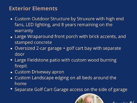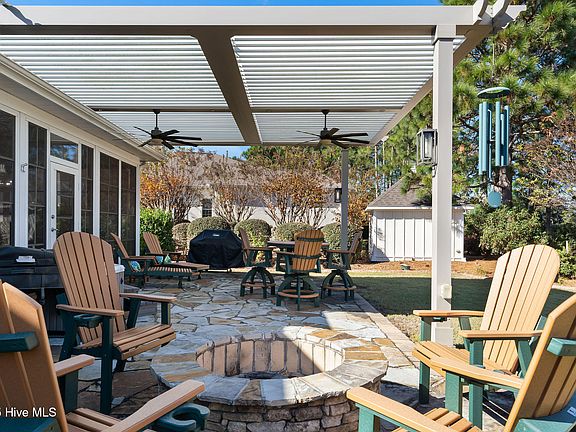 Welcome to this exceptional, custom-built brick home nestled within the prestigious, gated, community of Compass Pointe. Brimming with Southern charm, the inviting wraparound front porch sets the stage for an impressive residence offering every luxury and modern convenience imaginable. Step inside to an open-concept floor plan, ideal for entertaining guests. Enjoy extended engineered hardwood flooring throughout the common areas, elegant crown molding, and detailed wainscoting. The spacious great room boasts a cozy gas log fireplace, soaring vaulted beamed ceilings, and telescoping doors that open to a stunning three-season room. This versatile space features an EZ-Breeze window system and stamped concrete floors. Enjoy outdoor living at its finest in the private backyard, beautifully landscaped with stamped concrete borders, a fieldstone patio, and an impressive Struxure pergola. This unique structure is adjusted by remote control to track the sun, ensuring comfort in any weather, and includes two premium outdoor fans and LED lighting. The chef's kitchen is a culinary dream with custom cabinetry, granite countertops, a stylish backsplash, and premium Bosch appliances. Highlights include a pot filler, in-cabinet microwave, and an extended induction cooktop. Host memorable dinners in the generous dining area adorned with tray ceilings. Retreat to the luxurious master suite, complete with dual walk-in closets, tray ceilings, and a spa-inspired bathroom featuring dual vanities and a custom-tiled walk-in shower. The main level also offers a spacious guest bedroom, a full bath with a tiled shower and oversized tub, and a third bedroom with French doors—perfect for a home office or media room. Upstairs, discover a massive fourth bedroom or bonus room with a full bath, providing the perfect guest suite or flex space. Additional highlights include an oversized garage with a side-load golf cart entrance. This truly one-of-a-kind home is an unmatched opportunity in the area.