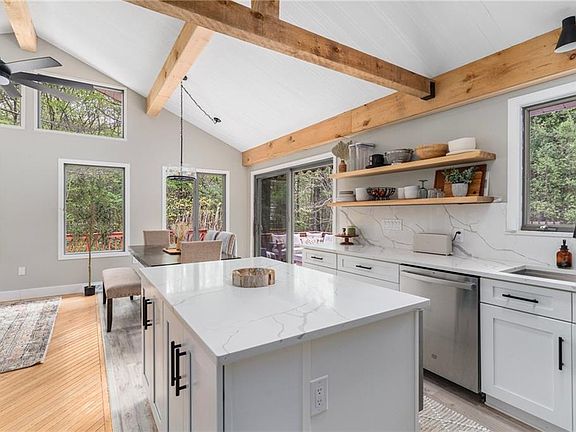 Completely Renovated & Modernized Retreat! Nestled on nearly two private acres, this stunning contemporary ranch has been transformed into a sophisticated haven. Set back 200 feet from the road and enveloped by hundreds of acres of peaceful serenity, this home offers the ultimate in privacy. Step inside to discover soaring cathedral ceilings and an abundance of expansive windows that flood the completely reimagined interior with natural light. Enjoy seamless indoor-outdoor living with a huge wrap-around deck, perfect for entertaining or simply relaxing. This meticulously renovated home now features three spacious bedrooms and two beautifully appointed full bathrooms. Modern comforts include central heating & air conditioning. Peace of mind comes with a young roof, low-maintenance vinyl siding, and a newer hot water tank. For the green thumb, several outbuildings include a charming greenhouse, ready for your gardening passions. Did we mention, walking distance to Carr Pond Wildlife Refuge with Hiking, birding, snowshoeing, and fishing!! Experience contemporary luxury and unparalleled privacy in this exceptional, move-in-ready home.