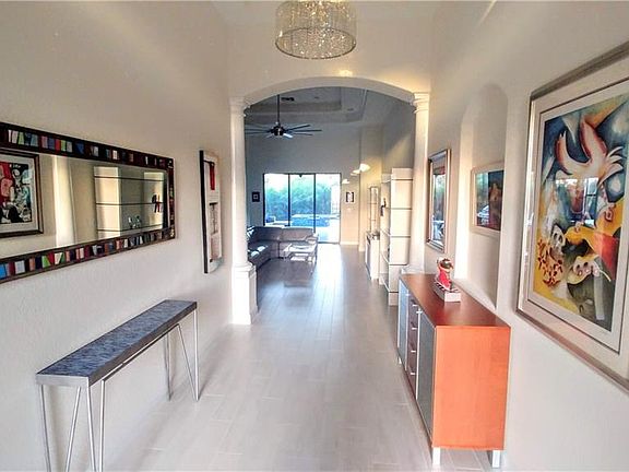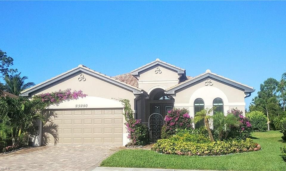 Mediterranean-Style Pool/Spa Home w/Tile Roof, Paver Drive, Iron Gate & Lush Landscaping. Natural Gas Community-268 SFR in Bonita Lakes. Spacious Greatrm, Soaring Ceilings Open to Kitchen & Dining Area. Elegant Tray Ceilings w/Crown Molding, Porcelain Plank Tile Floors Thruout, Arched Doorways & More! Kitchen has 12ft Breakfast Bar, Granite Counters, White Shaker Cabinets, Stainless Appls, Recessed/Under Cabinet Lights. Extended Dining Area w/Mitered Glass Windows. Owner's Suite has Bay Windows, Door leading out to Lanai & Walk-in Closets. Owner's Ensuite Bath-Walk-Around Shower w/Dual Shower Heads, Jacuzzi Tub w/Jets, Separate Vanities w/Granite Counters. Guest Bdrms share Bathrm w/Frameless Shower Doors & Vanity w/Granite. Den w/French Glass Doors & 1/2 Bth. Extended Lanai, New Caribbean Blue Pool/Spa w/Waterfall/Gas Htr, 16" Pavers, Travertine Coping, Mansard Cage w/Picture Window & Unobstructed View of Tropical Palm Trees. Pie Shaped Yard is Private & Serene. Lanai has Gas Grill, Mounted TV & Lg Covered Area. Spacious Garage w/Epoxy Floor. Guard Gated, Mature Landscaping, Sidewalks, Pool/Spa on Lake, Tennis & Fitness. Premier location w/Quick Access to I-75, Beaches & Airport!