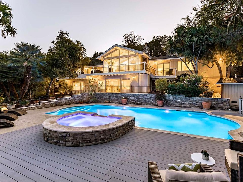 Nestled on a private lot of over an acre, this light-filled home offers outstanding views and a peaceful setting, with 4 bedrooms, 2 bathrooms, 2 half-baths, and over 3,160 square feet of living space. Highlights of the home include two fireplaces, the charming kitchen with a sunny breakfast nook, and the expansive entertainment deck providing the perfect venue for taking in the natural beauty of the home's surroundings. Downstairs, the spacious family room opens to the incredible pool and spa, while flexible-use space can be used as an office to work from home in style. This serene, verdant location will leave you feeling a million miles away from it all, yet you will be just a short drive to the Rancho Shopping Center as well as downtown Los Altos, and you will enjoy easy access to Interstate 280 for Bay Area commuting. Plus, children may attend acclaimed schools including Loyola Elementary, Blach Intermediate, and Mountain View High (buyer to verify eligibility).