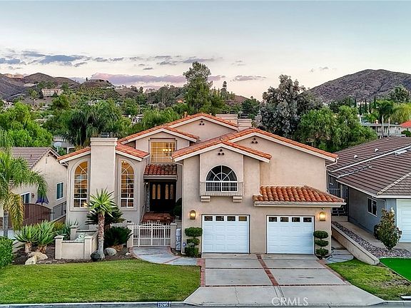 Welcome to your dream home on the 9th hole of the exclusive Canyon Lake Golf Course — where resort living meets timeless elegance. This 5-bedroom, 4.5-bathroom, 4,207 sq. ft. masterpiece offers everything you’ve been searching for inside the gates of one of Southern California’s most sought-after communities. Step inside to find grand architectural design, featuring soaring ceilings, stately columns, and walls of windows that flood the home with natural light. Entertain with ease in the formal living room with a cozy fireplace, a formal dining room ideal for gatherings, and a spacious family room with its own fireplace and full wet bar complete with a wine fridge, sink, and custom wine rack. The chef’s kitchen is a showstopper — recently upgraded with brand-new granite countertops, Bosch double ovens, a Draco microwave, and a built-in Sub-Zero refrigerator that anchors the space in style and functionality. Retreat to your split-level main primary suite, a true sanctuary with a romantic fireplace, private balcony access from both the bedroom and bathroom, and serene golf course views. A junior primary suite also features its own fireplace, while a first-floor ensuite bedroom offers comfort and privacy for guests or in-laws. Two additional bedrooms share a convenient Jack-and-Jill bath.