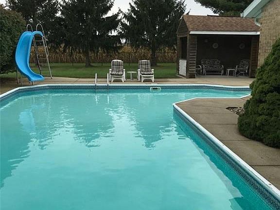 WOW! Come see this spacious home and its private backyard featuring a beautiful in-ground pool and cabana. This is a rare ranch house where the kitchen, dining room, and living room are all open to each other. The cozy family room has a propane fireplace to enjoy. There are three bedrooms, including a master bedroom with its own bathroom. The extra 2-car detached garage is very well built and perfect for a workshop. The house is located on a quiet street in the country with no rear neighbors, yet it takes just minutes to get to town!