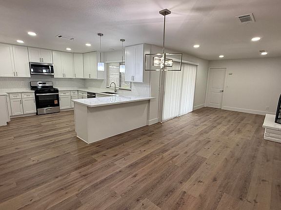 Stunning Fully Renovated Home Showcasing High-End Finishes And Impressive Upgrades Throughout. The Exterior Shines With Fresh Full-House Paint, Updated Moldings And Fascia, Two New Windows, And Lush New Sod In Both The Front And Backyard Creating Immediate Curb Appeal. Step Inside To Gorgeous Brand-New LVP Flooring, New Baseboards, Freshly Textured Walls And Ceilings, And Completely Updated Interior And Exterior Doors. The Beautifully Redesigned Kitchen Features Modern Cabinets, Sleek Countertops, Stylish Backsplash, And A New Sink And Faucet. Both Bathrooms Offer A Spa-Like Feel With New Tubs, Designer Tile, Updated Vanities, Countertops, And Mirrors. Additional Upgrades Include New Privacy Blinds In Every Room And New Ceiling Fans. This Move-In Ready Home Delivers Exceptional Quality, Modern Style, And A Truly Turnkey Living Experience. Spacious Storage in Backyard Is Finished with Flooring, New Roof and could Make a Great Hobby Room or Gym Space!