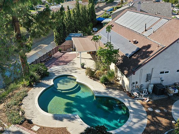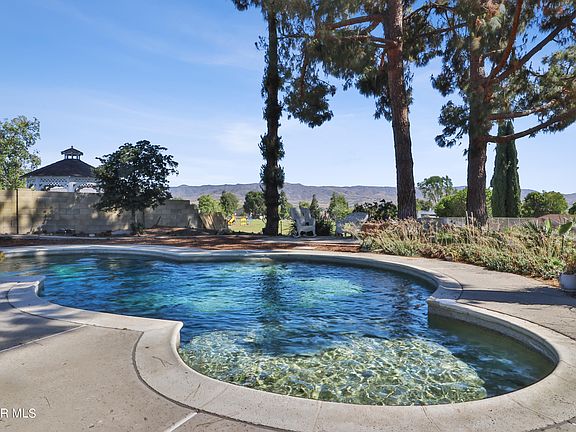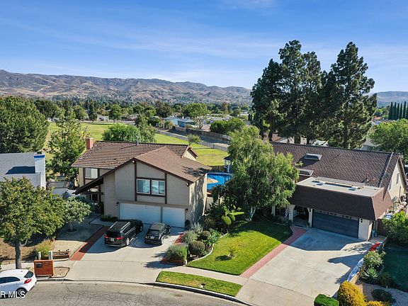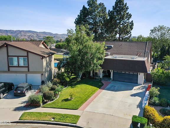 Fantastic pool home with panoramic views of the Santa Susana Mountains! This is a true entertainer's home in the heart of Simi Valley. The curb appeal and lush landscaping invite you into this well-loved home. Upon entering you're welcomed by a large living room with a magnificent fireplace framed in by two large windows, allowing an abundance of natural light. The rear of the house features an open concept design with a brilliant family room wit built in wet bar. The oversized kitchen enjoys oak cabinetry, granite countertops, and travertine floors. The kitchen window awes with stunning mountain views. Behind the kitchen is a smartly located breakfast nook with custom built-in oak cabinets and a delightful china cabinet. The family room and kitchen open to an incredible outdoor space featuring a large custom pool, mature pine trees. A grand pergola, custom deck, built in BBQ and a conveniently designed kitchen pass through are perfect for outdoor entertaining on warm summer nights. The first-floor master suite offers plenty of privacy and includes a walk-in closet. The master bathroom boasts marble counters and travertine flooring. Rounding out the downstairs are two additional bedrooms and a nicely updated bathroom with granite counters and tub/shower walls. The upstairs is a home in itself. There is a second master suite and a massive bonus room with vaulted ceilings. The west wall is adorned with custom oak cabinets and a gift-wrapping station. There is even a hidden door which leads to a convenient storage area. A cozy library, perched atop the living room consists of more custom built-in's and plenty of light from a large skylight in the ceiling. The attached garage and laundry area includes an abundance of storage cabinets. Plenty of updates in this home including a tankless water heater, solar, dual pane windows, newer HVAC and more. Easy access to the 118 freeway and centrally located in beautiful Simi Valley.