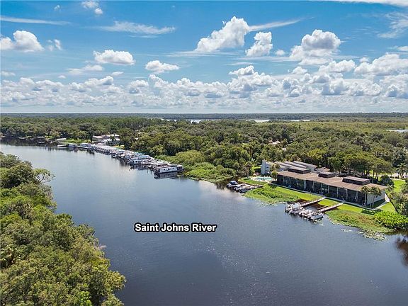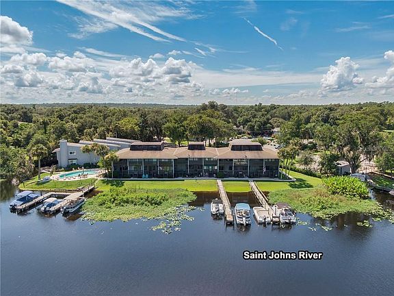 DELAND: UPDATED ; MOVE IN READY ; ST. JOHNS' RIVERFRONT CONDO. Welcome home! Look no further-this is your dream home. This 2 bedroom 2.5 bathroom home is in immaculate condition and there is attention to EVERY detail to make this home just PERFECT! When you enter the home the laundry room is to your right and features washer and dryer and extra storage space. You then make your way to the gourmet kitchen with granite counters, white cabinets, decorative back splash, stainless steel appliances, recessed lighting and wet bar with wine cooler. You will love cooking in this space with views of the river! There is a spacious dining area and bar stool seating at the kitchen counter so you can entertain friends and family easily! The living room features sliding doors to the private screened porch. This will be your favorite spot morning and night! The Master bedroom and 2nd bedroom are upstairs. The master bedroom is large and has custom build in closet/storage and a sitting area with beautiful views of the river. You could also make this space an office and work from home! Additional bedroom is spacious and also has a private bathroom. This property is truly a MUST SEE! HOA fees cover exterior maintenance, roof, pest control, community pool (located just around the corner. The St.Johns River club is minutes from Hontoon State Park. and close to the Amtrak (potential SunRail) Station.