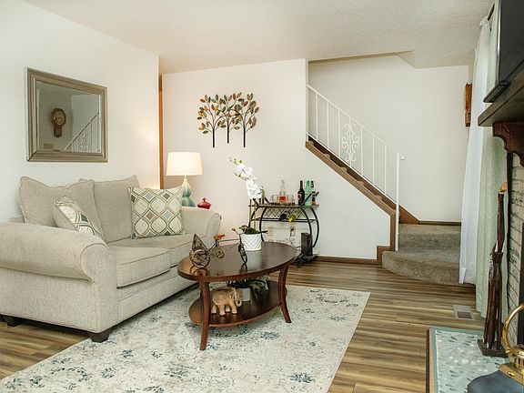 Condo living at its best! This highly sought after community of condos in Waterloo offers maintenance free living, a 3-hold golf course, a clubhouse, and much more! This two-story condo provides a nice open layout with a great flow from the living room to the dining room and kitchen. The kitchen is brand new, offering beautiful oak cabinets, tons of counter space and new appliances. A gas fireplace anchors the living room, and from here you will enjoy expansive window views and patio access through the updated patio door. Living and entertaining wrap around to the formal dining space with plenty of room for a large dining table and is complete with built-in storage and a serving countertop. Finishing this level, a half bathroom is conveniently located off the kitchen and living room. The two generously sized bedrooms reside on the second level of this home, and includes a hallway full bathroom, and a spacious master bedroom with half-bathroom and walk-in closet. The lower level of this home offers a family room, laundry, and great options for storage. The exterior spaces include a two stall garage and a fantastic patio space with privacy fence. This great offering will go fast!