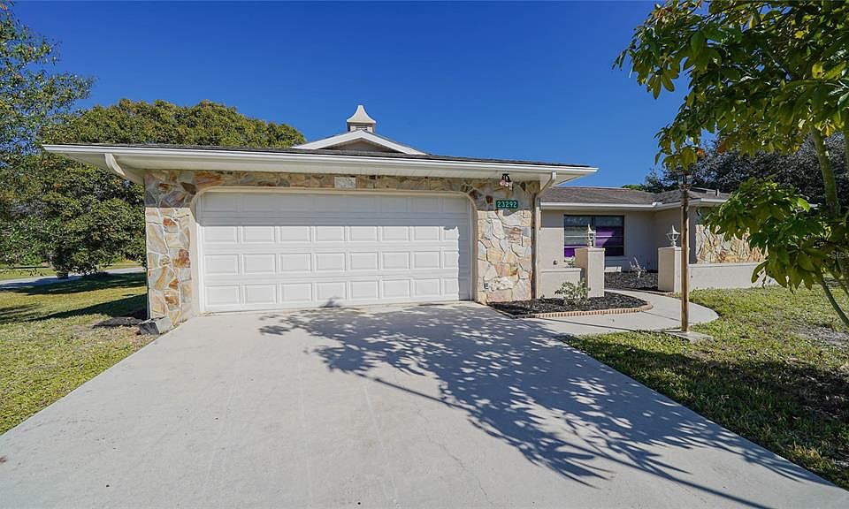 DOUBLE LOT POOL HOME WITH A NEW ROOF !!! This beautiful home has been updated with tile flooring throughout, fresh paint, trim, wood shaker cabinets, granite counters, ceiling fans, fireplace surround, stainless steel appliances, shower tile, vanities, plumbing fixtures, glass enclosure, mirrors, toilets and more. There is so much to love about this property... corner lot with large driveway, screened double door entry, foyer, formal living room, family room, formal dining room, kitchen nook, large master bedroom with dual walk in closets leading to the updated master bathroom, spacious guest bedrooms, laundry room, multiple glass sliders leading outside, covered lanai with accordion hurricane shutters, large pool deck with sparkling pool, fenced yard with two sheds. This home has it all....... Call today for a tour