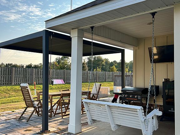 Covered back patio with custom pergola ideal for entertaining or relaxing