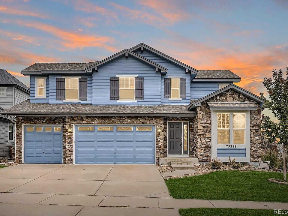Welcome to this beautiful 5-bedroom, 4-bathroom home, lovingly maintained by the original owner and ideally positioned on a spacious corner lot surrounded by mature trees for added privacy. Thanks to the home’s desirable south-facing orientation, you’ll enjoy abundant natural light year-round and minimal snow shoveling in the winter. Perfectly situated within walking distance to Frontier Valley, Cimarron, and Legend schools, this home offers an exceptional location in one of Parker’s most sought-after neighborhoods. Step inside to discover a bright, open-concept main floor designed for both comfortable everyday living and effortless entertaining. The chef's kitchen showcases stainless steel appliances, granite countertops, and ample cabinetry, flowing seamlessly into the dining and living areas. A main-floor office or flex room tucked at the back of the home offers privacy and versatility—perfect for remote work, a playroom, or a quiet retreat. Upstairs, unwind in the spacious primary suite featuring a five-piece ensuite bath, complemented by three additional light-filled bedrooms. Recent updates include fresh interior and exterior paint, new carpet upstairs, and a new hot water heater, making this home truly move-in ready. The finished basement expands your living space with a large recreation area complete with a pool table, a guest bedroom, and generous storage. Step outside to your own private backyard oasis—an expansive outdoor space with a stamped concrete patio, and pergola, perfect for entertaining, dining al fresco, or relaxing under the stars. The three-car garage offers plenty of room for vehicles, storage, and hobbies. Residents enjoy access to Canterberry Crossing’s clubhouse and pool, along with nearby parks, trails, and top-rated Douglas County schools. This beautifully maintained home offers the perfect blend of comfort, convenience, and Colorado lifestyle—an opportunity not to be missed! Virtual tour available.