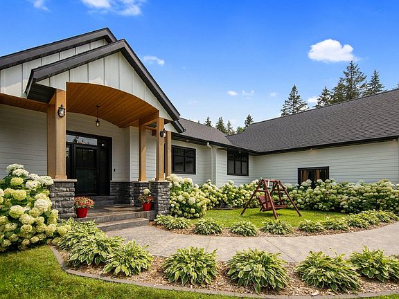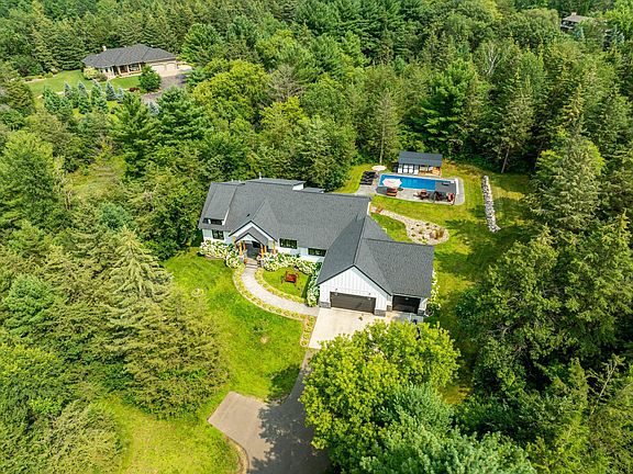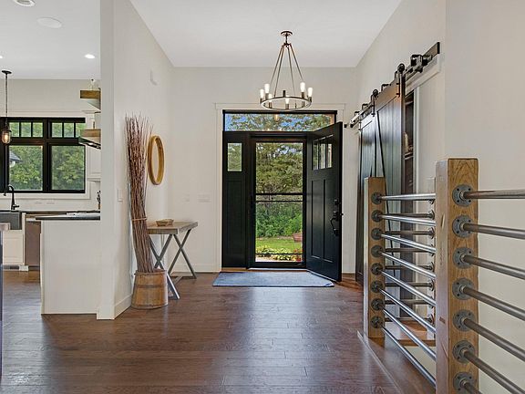 This stunning 2018 custom-built home in Seven Oaks offers unparalleled luxury and comfort, with a blend of rustic and modern elements that create a uniquely charming atmosphere. Boasting nearly 5,000 square feet of living space, the residence features 5 bedrooms and 4 bathrooms, ensuring ample room for both relaxation and entertaining on this 3 acre lot. The home is designed with an open concept main level, maximizing natural light through an abundance of windows. The expansive kitchen features an oversized island, perfect for any holiday or season. Step into your own private oasis with a pool and hot tub out back. The additional transition from the master bedroom to the hot tub enhances the luxurious living experience. Built with high-quality materials, including Marvin windows, Hardy siding, 1100sq ft of finished/insulated garage space ensures durability and energy efficiency. All of this while conveniently situated just minutes from the Hwy 36 bridge and Downtown Hudson, offering easy access to amenities and city life while maintaining a serene private setting.