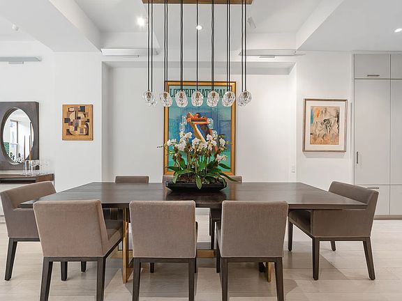 A keyed elevator transports you to your home, arriving at a central entry foyer. Entertain and relax in the gracious, generously-sized living room with airy 10'4" beamed ceilings and plenty of wall space for hanging art. As part of the renovation, the living room was expanded to eliminate one of the bedrooms, but it can easily be converted back to a 3-bedroom layout if desired. The large open dining room adjoins and affords a seamless flow for the host when serving meals. As impressive is the new state-of-the-art open kitchen, a modern chef's dream equipped with abundant custom cabinetry, stone countertops, an island/breakfast bar, and premium appliances including a Wolf stove and double ovens, a vented range hood, Sub-Zero refrigerator, Miele dishwasher and Wine Fridge.
