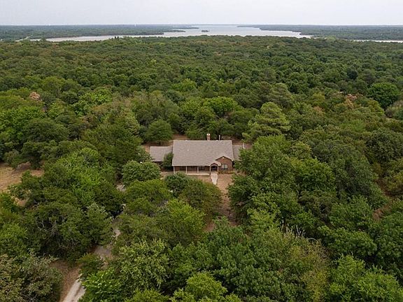 Great one owner home tucked away on 10 acres close to town. Long covered front & back porches. Large living with fireplace with lots of windows and great views! Open kitchen with double oven, gas range, large butcher block island with sink & storage. Extended dining room with wood burning stove area. Hallway has light up cabinets. Great views in Primary large Bedroom. Primary Bath has double vanity, garden tub and shower. Laundry room with storage with access to bath through to garage. Guest bath has tub/shower combo. Safe room in oversized garage. Spacious open deck with electric. Garden area, storage area, and storage building. Outside water feature. Circle gravel drive. Dog run with door to garage.