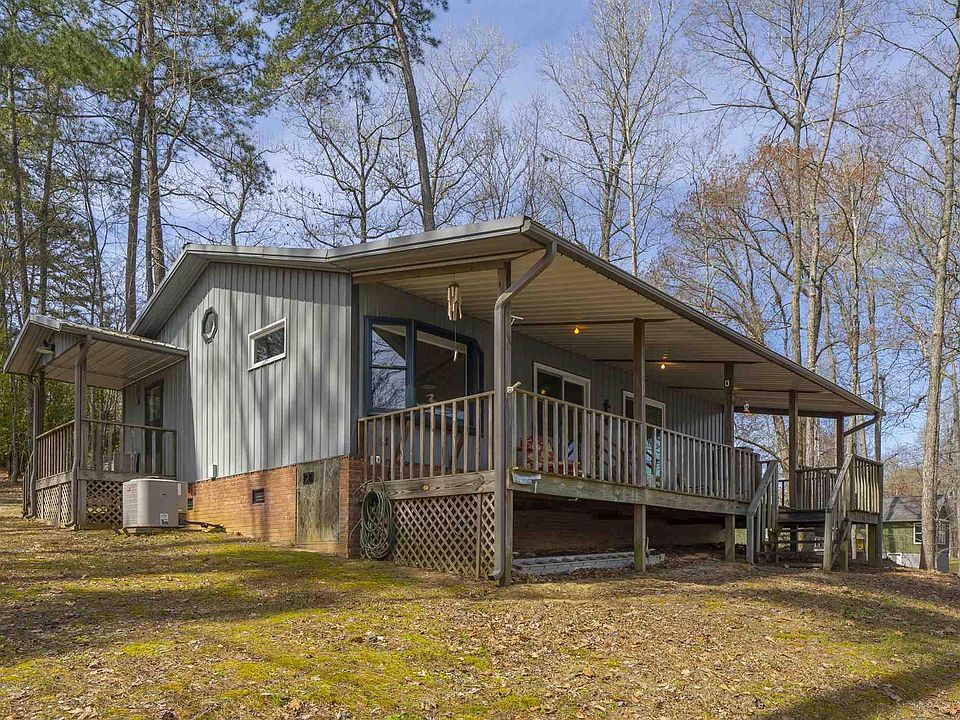 This sturdy steel structure w/metal roof sits on .65 ac. Enter the home from the side porch next the parking pad or from the full width covered porch that overlooks beautiful Lake Murray. Vaulted ceilings w/exposed beams & all new, energy efficient windows & doors enhance the open concept. The KIT has lots of cabinets, pull-out drawers, & counter space. The island, w/butcher block top & slide-in, smooth surface range also serves as a bar. The window seat in the GT RM is the perfect spot for reading or simply enjoying looking at nature. There are laminate floors in the main area, tile in the bath, & carpet in BRs. There are ceiling fans in all living & sleeping areas. The BA has a lg walk-in shower & is the laundry room. There are leaf-guard gutters front & back. There is a storage building for yard equipment & lake toys. This property has a floating dock & jet ski dock in place. A deep water creek runs directly in front of the property; therefore, there is always water at the end of the dock. By land, it is only 5 mi to a lakeside restaurant or marina & 17 mi from Newberry Hospital. For air travel, CAE is less than 1 hr away; GSP is 1.5 hrs away; & CLT is 2 hrs away. This property offers great opportunities for kayaking, canoeing, boating, fishing, & skiing. Sale includes home warranty, transferable termite bond, & furniture is negotiable. Move-in ready. Pack your toiletries, a change of clothes, & start enjoying your new lake house the same day as settlement!