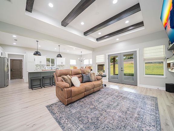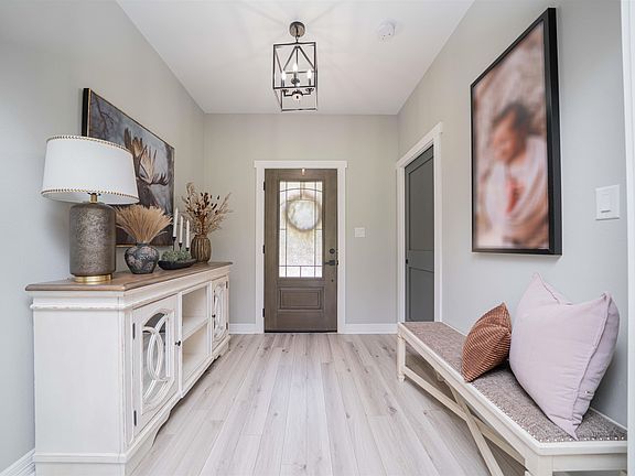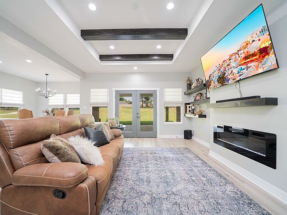 Experience the perfect blend of contemporary style and farmhouse warmth in this like-new construction situated on nearly an acre. This 3-bedroom, 2-bath home features an open-concept layout with luxury vinyl plank flooring, soaring ceilings, and a calming palette of grey and white. Roman shades and an electric fireplace add a cozy, refined touch throughout. The kitchen is a true standout—boasting a large island, two pantries, sleek Frigidaire Gallery appliances, and bold black fixtures for a modern flair. The spacious primary suite includes a walk-in shower, tile flooring, and a generous walk-in closet, while the guest bath offers a convenient tub/shower combo. Tech lovers will appreciate that the entire home and patio are wired for Ethernet, making work-from-home and streaming a breeze. Outside, a 20x30 workshop is ready for any project, complete with a garage door, mini-split A/C, full insulation, eight outlets on separate breakers, and a side wood deck. The attached home garage is insulated and oversized—ideal for shelving, equipment, or a workspace. Step out to the extended back patio and enjoy a beautifully sodded lawn, manicured flower beds, and concrete walkways—perfect for relaxing or entertaining. Turnkey perfection in a prime location—your dream home awaits!
