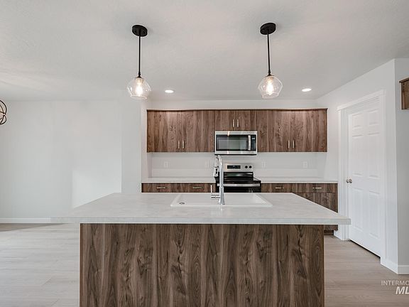 Get up to $30K now thru 11/30/2025 with the Festival of Homes Promo! Feel enriched in your brand new home located in Horseshoe Bend, Idaho! The brand new Eliot 2318 is waiting for you! The main level's open concept flows smoothly through the entryway, kitchen, dining area, and living room. The added bonus of a downstairs den is perfect for an office or can easily be used as a guest space. The kitchen comes with stainless steel appliances and stylish solid surface countertops, adding both functionality and aesthetics to the kitchen. Upstairs, all 4 bedrooms await, including the primary suite with a walk-in closet and en suite bathroom. Work, play, or get creative—the upstairs loft is yours to turn into whatever you want. The home also features large windows that invite natural light throughout, making every room feel bright and airy. Enjoy the flexibility of a home designed to fit your lifestyle. Potential RV parking available. Photos are of the actual home!