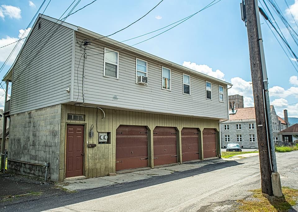 Apartment over four car garage in Lewistown Borough. Apartment includes 2 bedrooms, 1 full bath, kitchen and living room open concept. Garage below has four stalls with separate doors, but no walls in between stalls. Option for buyer of 127 Logan Street to purchase this property as the yards are adjoining.