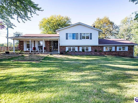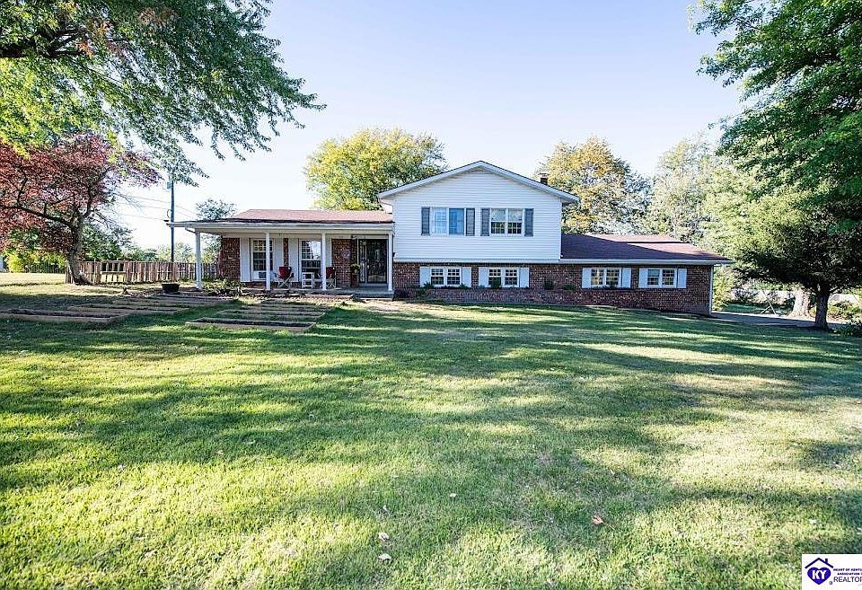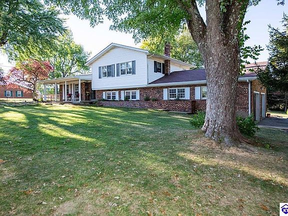 HOME HAS AN ACCEPTED CONTRACT BUT WILL REMAIN ACTIVE AND TAKING BACK UP OFFERS. Location, Location, Location! This 3 bedroom 2 bath tri-level home with 1.283 acres is located just on the edge of Elizabethtown behind John Hardin High School. Extremely convenient to all amenities the area has to offer. The main level features hardwood floors in the living and kitchen area with all kitchen appliances will convey with the sale. Off the kitchen there is an enclosed porch that overlooks the very private back yard. The upper level features a common full bath, and 3 bedrooms including the primary suite with bath. The lower level includes another full bath, large secondary living area that could be used as a guest room/office or playroom and laundry area that has potential for kitchenette. There is a 2-car attached garage as well as an additional 2 car detached garage, perfect for a workshop or storage. If you are looking for country living, look no further. Minutes from all the amenities of town, easy access to Fort Knox, Joe Prather & I65.