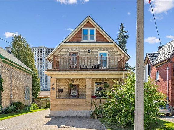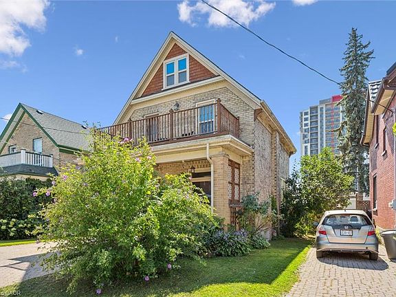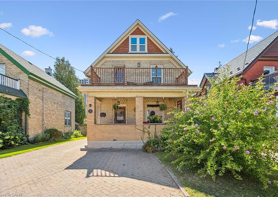 OPEN HOUSE SATURDAY OCTOBER 4TH 12-2PM. This charming yellow brick century home blends historic character with modern comfort, all just steps from the best of downtown living. The home welcomes you with a spacious covered porch and a large foyer that sets the tone for its warm and inviting interior. A bright living room overlooks the quiet, tree-lined one-way street, while the main floor also features a formal dining room perfect for hosting holidays and family gatherings. The all-white kitchen, updated in 2012, features ceramic tile flooring, pot lighting, ample storage, included appliances, and space for a breakfast table. At the back, a handy mudroom provides easy access to the private fenced yard. Upstairs, you will find three generous bedrooms and a 4-piece bath. An upper balcony off the hall offers a peaceful retreat overlooking the street. The stone basement provides laundry, storage, a rough-in for a bathroom, and a walk-up exit. There is also untapped potential with the attic, ready to be finished into a cozy loft. Outdoor living shines with a bricked driveway offering extra parking, plus a detached garage that's been cleverly converted into a garden shed in the front and a bar cabana with covered dining in the back. Definitely a spot to host some friends or kick back and relax. With tall ceilings, abundant natural light, and a location that can't be beat, this timeless home offers both character and convenience in the heart of the city. Almost all windows updated, furnace 2018.