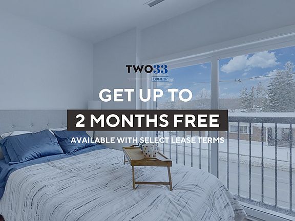 Two 33 Dunlop is a brand new luxury apartment building in Barrie, Ontario. This beautiful modern building has an elegant design and finishes all throughout. Your new home at Dunlop will be simple and care free with all the amenities one can desire. With our open and flexible 1 and 2 bedroom designs, you'll find it easy to tailor the apartment's functionality to your own personal sense of style. Come home to peace at Two 33 Dunlop. Enjoy the beautiful views from your home of the downtown Barrie skyline, Lake Simcoe and endless greenery. With steps away from downtown Barrie, where you'll find yourself surrounded by boutique shops and restaurants. Conveniently located near the 400 highway and the Allendale GO Station.