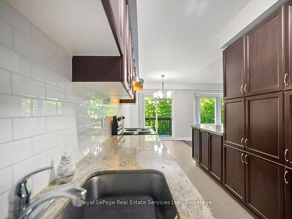 A very warm and bright two storey Townhome located in The Woodlands, in Lakeshore Woods area of Bronte. Quality built by Daniels Corporation. Hardwood floors through Living and Dining Room areas and a bay window overlooking the Forest. An efficient galley style eat in Kitchen with granite counters, Breakfast Bar and plenty of cabinets and a sliding door to the balcony which overlooks the Woods. Three spacious Bedrooms on second floor and a 4 piece Bathroom - Primary Bedroom with 4 piece ensuite, large walk-in closet and another romantic bay window also overlooking the Forest. Down to the Basement where you will find a fun-sized Recreation Room, another 4 piece Bathroom, a third Bay Window and a walkout to the private fenced garden and view of the many mature trees of the woods. Parks, Trails, Lake Ontario, Shops and Cafes are all nearby. Easy Access to GO Train and major highways