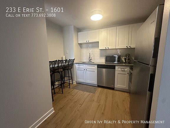 Gorgeous, Spacious Condo for Rent in Luxury Hi-Rise Amenity building in one of Chicago's Top downtown neighborhoods - Streeterville. Walking distance to: Northwestern Memorial Hospital, Northwestern Law School, park, running track, Michigan Ave., all major transportation. Walk to restaurants, coffee and donut shops (Stan's Donuts, Do-rite Donuts), entertainment (AMC movie theater, Navy Pier), and shopping. Whole Foods and Trader Joe's are also within walking distance. One-bedroom/one bathroom unit is located on the 16th floor in an elevator building. Great natural light and tons of closet space. Large living room with luxury vinyl and bedroom is a great size - can fit a queen or king bed plus additional furniture. Bedroom has soft well-kept carpet. Beautifully updated kitchen and bathroom. Kitchen has stainless steel appliances, dishwasher and eat-in breakfast bar. Good cabinet space. Bathroom has been remodeled with fresh tile and double vanity sink. This is a corner unit for added privacy and less noise. Full Amenity building includes 24-Hour Door person Rooftop Deck with Outdoor view and skyline views - great for sunbathing Spacious, clean Laundry Room Bike room Receiving room Large Party Room Business Center Fitness Room Valet Parking Available through the building No Pets Security Deposit Equal to one month's rent HOA move-in fees apply Available Now Schedule a Showing through the online showing link Green Ivy Property Management