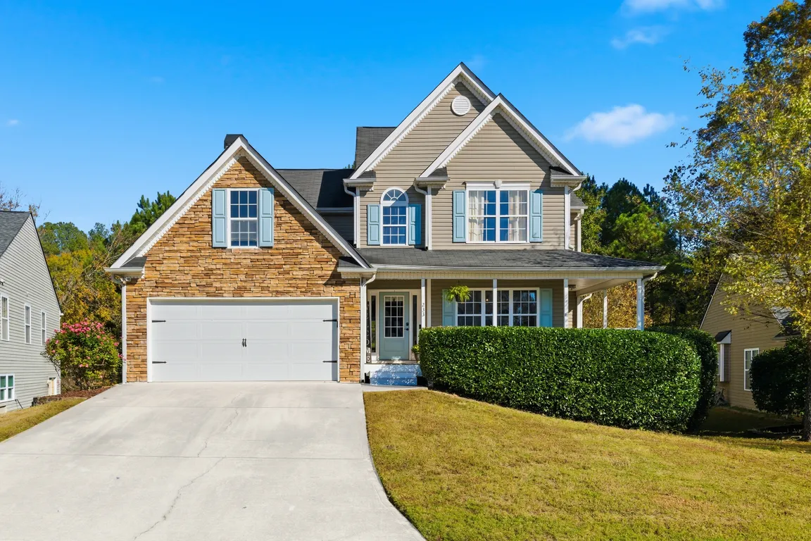 Two-car garageCovered deckUpdated kitchenOpen backyardOpen-concept layoutStacked stone accentsStainless steel appliances