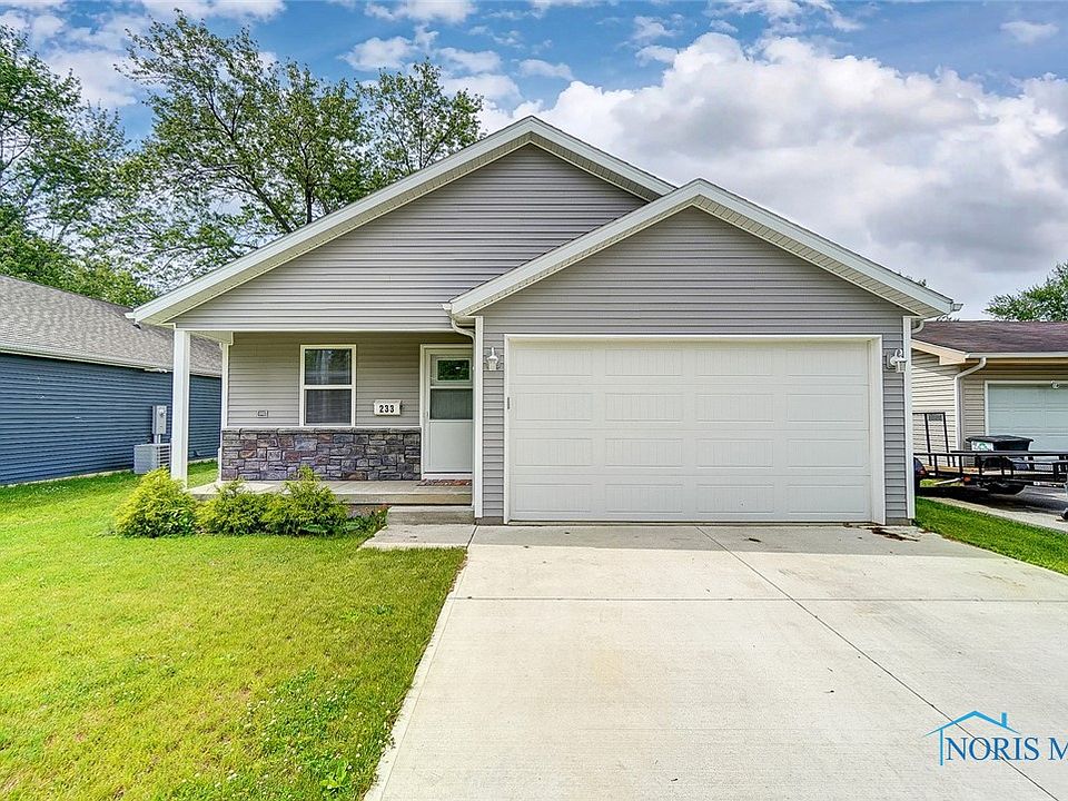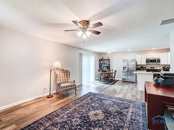 Newer ranch home features a desirable open concept living area Kitchen showcases white cabinets, center island, stainless appliances, under-cabinet lighting, plus separate dining area. Owner's suite offers a walk-in closet and private bath. Generous laundry room with built-in shelving. Enjoy time outside on the low maintenance patio. Whole house generator provides peace of mind during bad weather