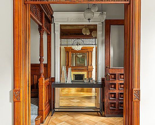 Throughout the home, historic craftsmanship shines: restored hardware, hardwood floors with mahogany inlay, and four wood-burning fireplaces with beveled mirrors and ornate mantels. Modern updates ensure turnkey living, including updated mechanicals and electric, central heating and cooling, and a visual intercom system on each floor. The finished basement with split system heating/cooling and an additional washer/dryer adds even more flexibility - perfect for a gym, wine cellar, or generous storage.