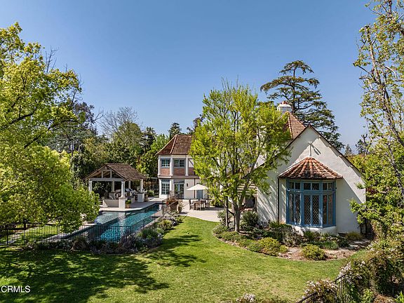 Custom Built French Normandy Style Architectural Dream Home masterfully reimagined in 2018 by Page & Turnbull Architects, completely renovated by Hartman Baldwin, & exquisitely designed by Willa Ford Interiors. This magnificent 3 story property is a state-of-the-art compound perched atop a knoll on one of the most beautiful streets in South Pasadena, a coveted neighborhood praised for its top-rated public & private award-winning schools. Perfect for grand scale entertaining, dramatic wrap around grounds connects the entire house with an indoor/outdoor flow bringing everyone to the spectacular backyard oasis, a heated 60 ft saltwater lap pool & spa, views & garden vistas, heated cabana equipped with built-in full outdoor kitchen, 36' BBQ, 2 ranges, fridge, sink, outdoor fireplace. Inside, welcome guests into an elegant entry foyer, stunning formal living room, soaring cathedral ceilings, leaded windows, 1929 original design fireplace, new open-plan chef's center island kitchen, 60' Wolf dual oven/range, 36' SubZero fridge & 36' freezer family room, additional playroom/lounge, 5 Bedrooms, 7 Bathrooms, luxurious Primary Suite with balcony access to backyard, breathtaking vistas of the green outdoors. Highlights: White Oak Hardwood floors, hand scraped Herringbone flooring, Pure White Caesar-stone countertops, Calcutta Gold tile backsplash, Gilded Iron & Satin Gold furnishing details, Schumacher wallpaper, steep ceiling beams, tankless hot water heaters, LifeSource whole house filtered water system, garage level to kitchen Dumbwaiter, EV charger, Alarm System, Security Cameras, Flexible basement guest quarters, Mudroom, 2 sets of Laundry Rooms, 2 dishwashers, 2 oversized attached Car Garage with long driveway room for multiple car parking spaces. The architectural elements & extraordinary attention to quality & details, make this estate a one-of-a-kind lifetime opportunity investment for the discerning buyer seeking ready-to-move in Forever Home!