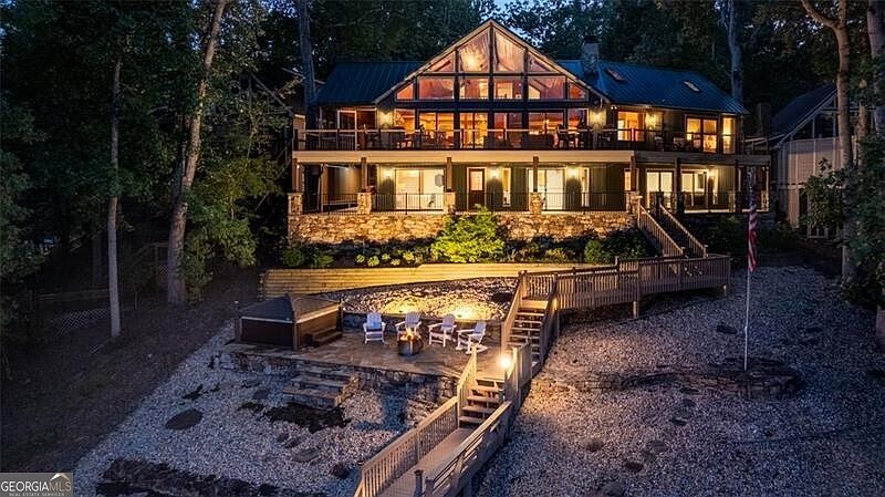 Imagine waking up to panoramic 180 views of Lake Lanier, where the sunrise paints the sky and the water stretches endlessly beyond your back door. Perfectly positioned on a private point lot, this rare property delivers the best of resort-style living without restrictions or dues. Just a short stroll from the award-winning Chestatee golf course and restaurant, it's where lake life and luxury living truly meet. Few homes on Lake Lanier can match what this one offers! Year round deep water, breathtaking sunrise vistas, and The Army Corps of Engineers line that runs all the way into the lake, unlocking endless opportunities for your dream backyard oasis. Picture an infinity edge pool spilling toward the shoreline, a terraced garden, or an outdoor entertaining space like no other. Here, imagination becomes reality. Follow the professionally landscaped, stepped path to your private 32x32 double-slip dock with a party deck, complete with an 8,000-lb boat lift and new jet ski ports. Whether you're hosting friends or going for a quiet paddle at sunrise, every day is a lake day. Designed with both relaxation and entertaining in mind, the home offers two expansive Trex decks, a new hot tub with automatic cover, and an oversized flagstone patio ideal for fireside evenings under the stars. The entire back of the house is framed in sliding glass doors, creating a seamless flow between indoor comfort and outdoor living. Inside, light filled spaces open to sweeping lake views from nearly every room. The main level primary suite is a warm, inviting retreat with wide plank pine floors, while the chef's kitchen features a gas range, double ovens, and granite countertops. Upstairs, a spacious loft adds flexibility for a bunk room, office, or epic game room. On the terrace level, you'll find three bedrooms including a private suite with its own fireplace plus an additional living room and an incredibly designed bathroom that elevates guest comfort. This level was created with gatherings in mind, offering space for family, friends, and unforgettable weekends at the lake. Modern upgrades add peace of mind with many smart home features, from smart lighting and an automated alarm system to exterior cameras. Storage is equally impressive with an oversized garage that fits two cars and a golf cart, plus a detached garage ideal for boats, jet skis, and all your lake toys. This isn't just a home it's a retreat, a gathering place, and a front-row seat to Lake Lanier's most captivating views. From coffee at sunrise to sunset cruises, every day here feels like a vacation. Don't just imagine it come experience it for yourself. This home is for the outdoor lifestyle enthusiast, under 30 mins to Atlanta Motorsports Park and Iron Mountain Off Road Park, Not to mention 30 mins to a number of hiking trails and Dahlonega and just an hour to Atlanta Airport!