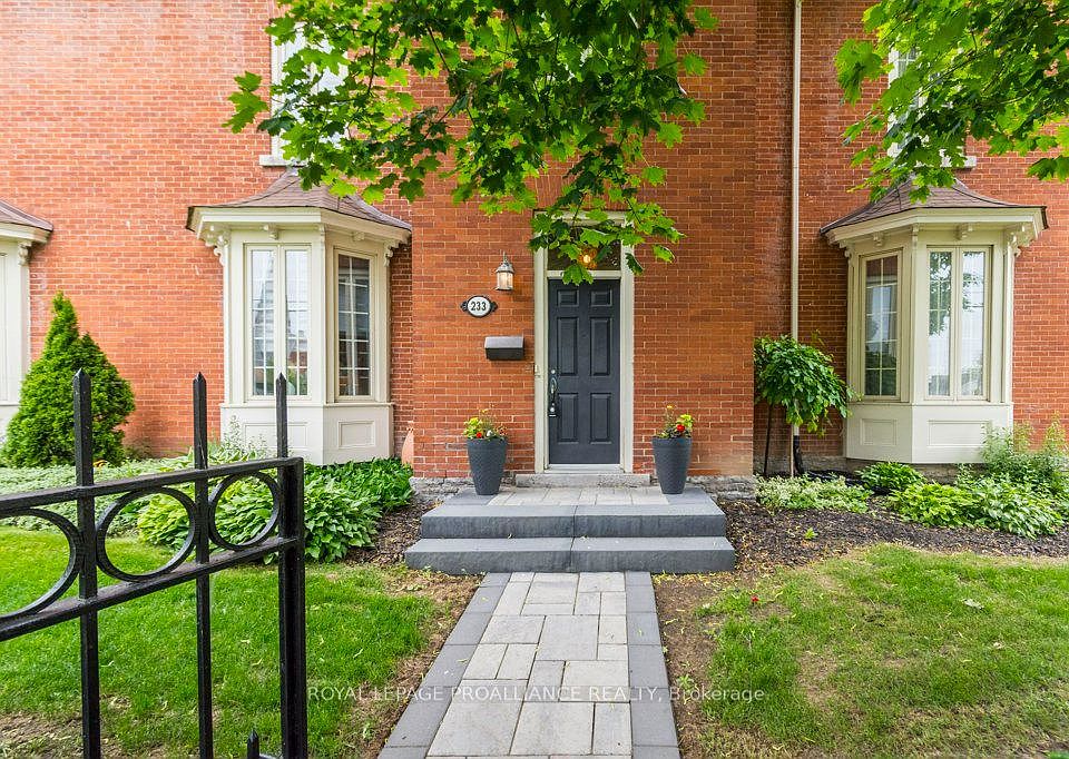 This stunning open-concept Victoria townhome is full of character and charm. Towering ceilings, 16 base boards and large windows on both levels that flood the space with natural light. Step inside through the elegant front door to a spacious foyer, powder room, and a stately, original staircase that sets the tone for the home. The main living area offers a bright, open layout with a generous living room and modern kitchen with center island perfect for entertaining or relaxing. The primary bedroom features a walk-in closet and direct access to the main bathroom and laundry nestled in the sought-after Old East Hill neighbourhood, close to downtown and just minutes from the 401, Bay of Quinte and the world-renowned wineries and beaches of Prince Edward County. Early possession possible if needed! Extensive renovating about 5 years ago while maintaining the charm of the past. All appliances and window coverings included.