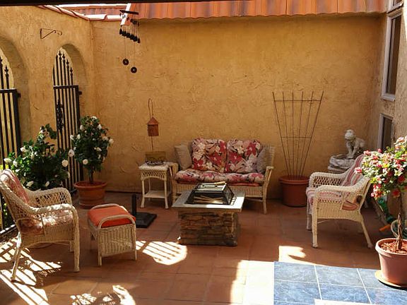 Charming Country Club Condo! Serene location, tucked away on Love Lane. As you enter the private courtyard, through the custom wrought iron secure entry way, you are greeted by a Bright open floor plan throughout 1st floor, neutral paint, Custom dining area table with storage, Kitchen has Corian countertops, custom cabinetry throughout home, Dual pane windows and new sliding doors. The Bedrooms are nice sized both with private bath, the master has a wonderful walk in closet, the balcony overlooks the common area courtyard. This is truly a wonderful condo!!