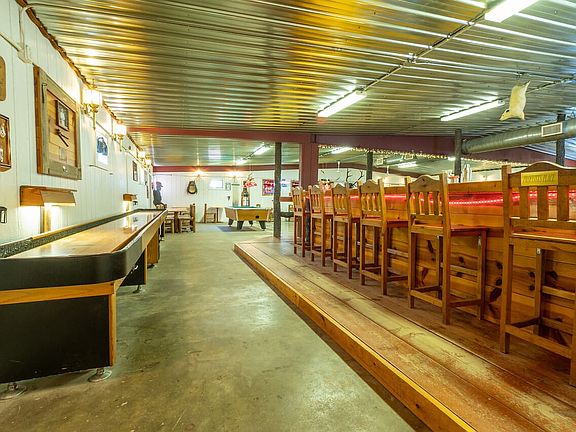 Office spaceLadies and mens restroomsRemodeled bathroomsCustom built wooden barPrep stationsLarge kitchenGorgeous great room
